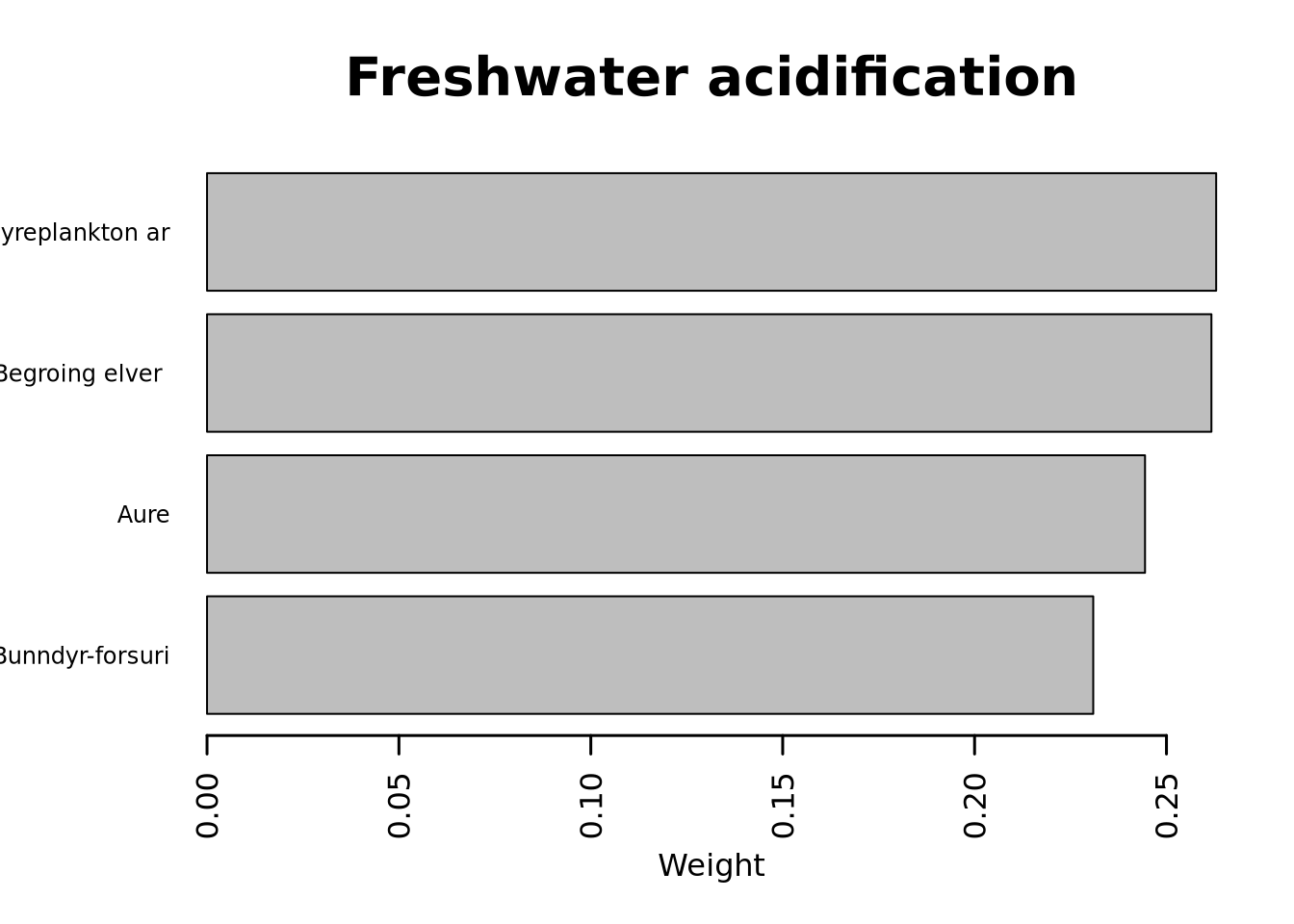 A table containing all indicator weights in numerical format is saved under results_Freshwater/indicatorWeights.csv.