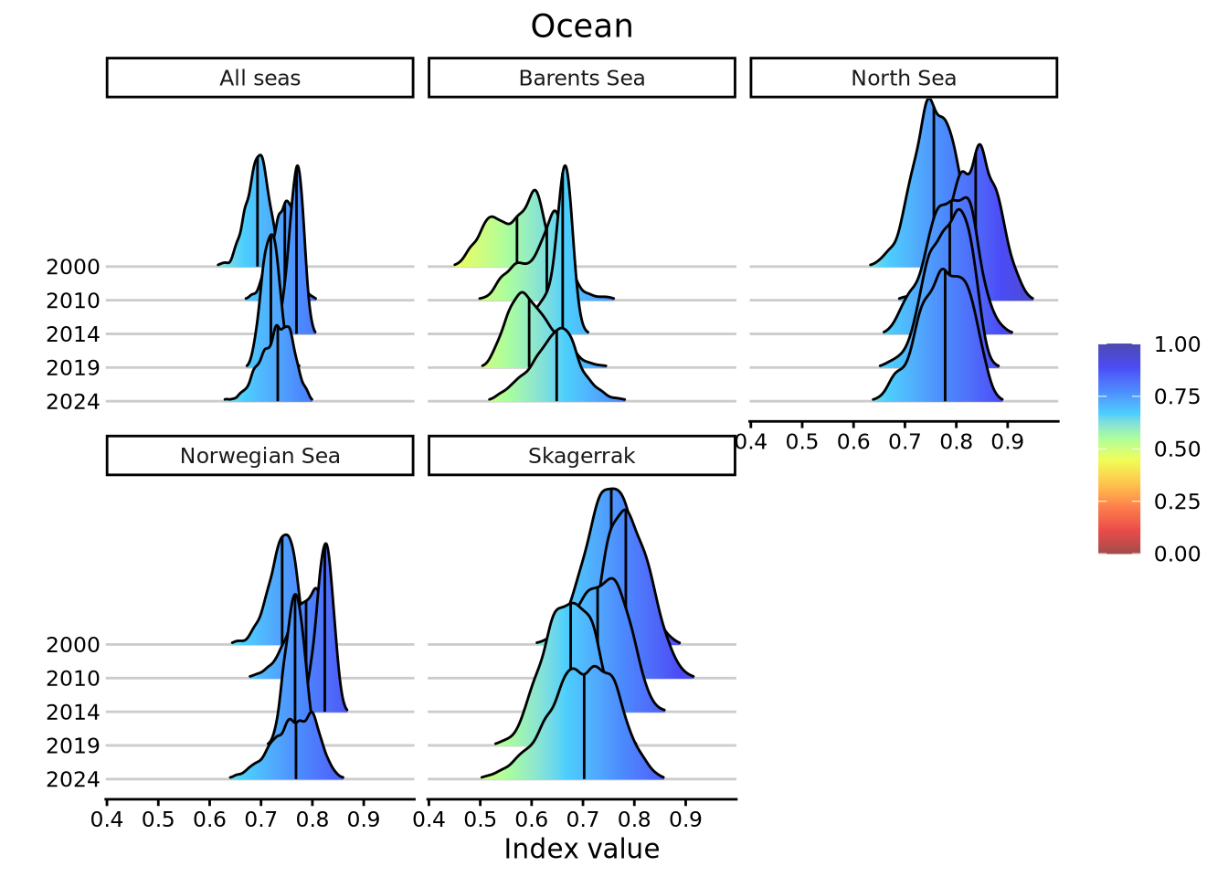 This should, however, be considered for future work, ideally in combination with a re-assessment and structured and standardized update of reference values across the indicator set. Fortunately, the option for using uncertain reference values in practice is already coded into “NIcalc”; specifically, within NIcalc::calculate_Index() there is a function called setCalculationParameters(), and the argument stochastic of that function has to be changed from “obervations” to “both” to include uncertainty in both yearly indicator values and reference values.