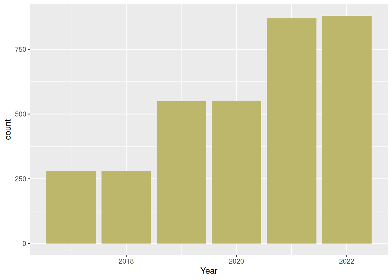 library(kableExtra)The data set is located on GitHub in an xlsx format. The data are split into different tabs based on year.